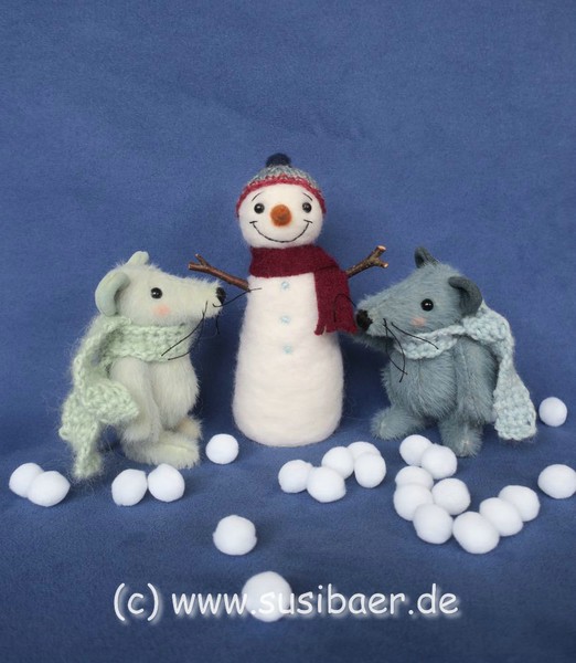 Die beiden haben ihren gefilzten Schneemann dabei
