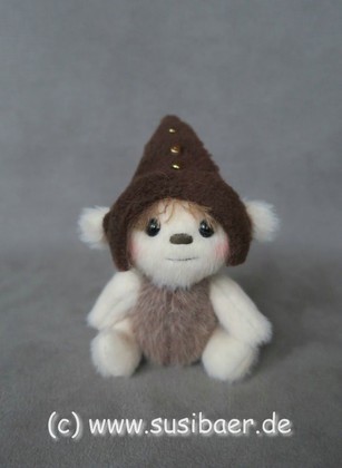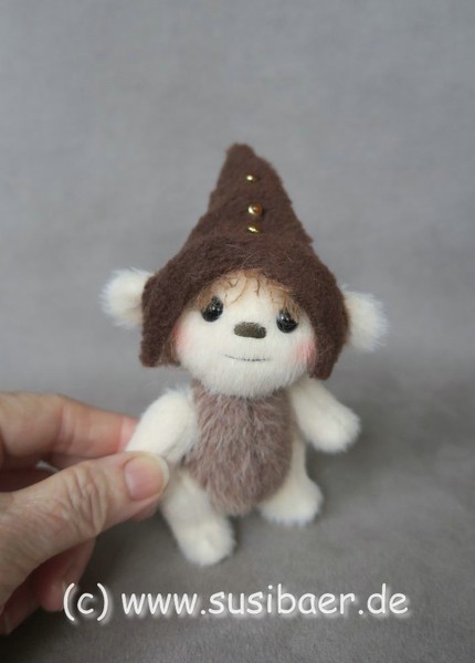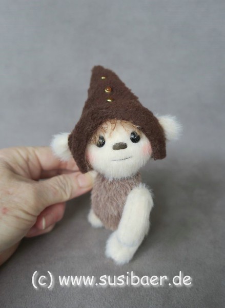 Genäht habe ich in aus Longpile, er ist voll beweglich und hat Glasaugen aus Lauscha