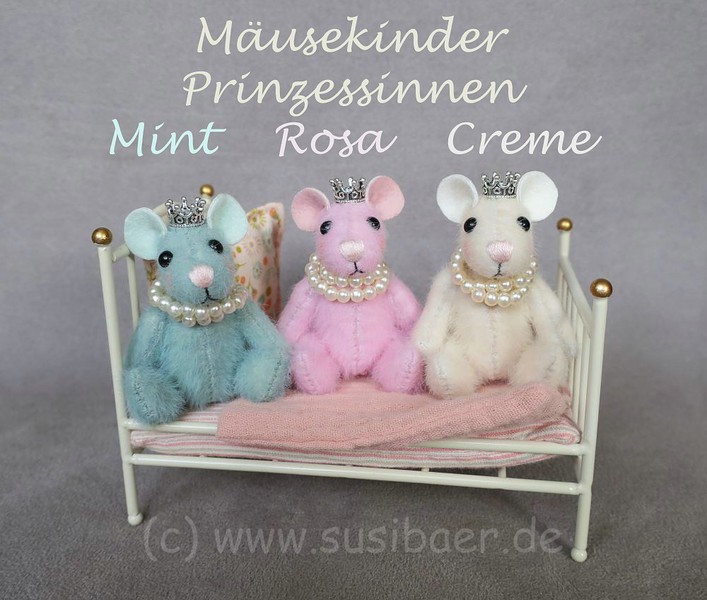 Die kleinen Mäuslein sind ca. 6,8cm groß, haben 5 Gelenke und Glasaugen aus Lauscha