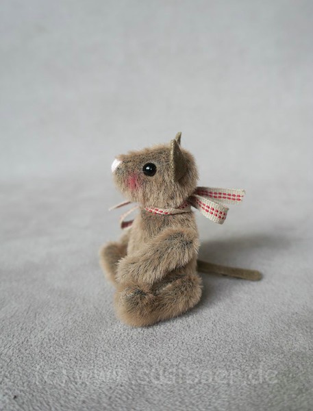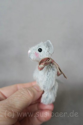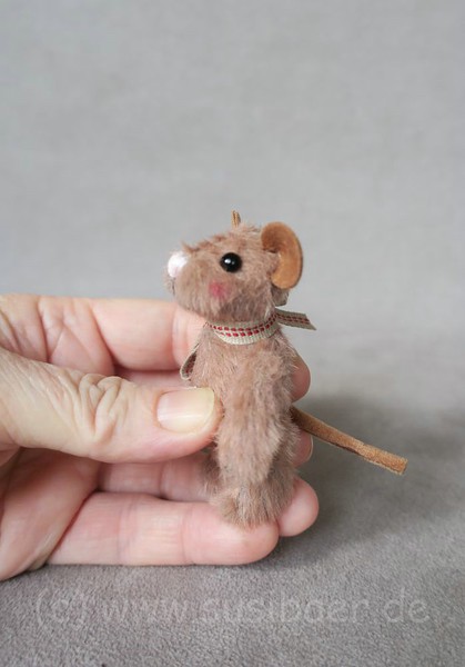 Die kleinen Mäuslein sind ca. 7cm groß, haben 5 Gelenke und Glasaugen aus Lauscha