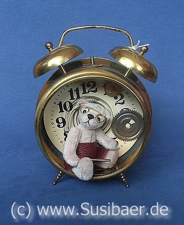 Er sitzt in einem alten, umfunktionierten Wecker